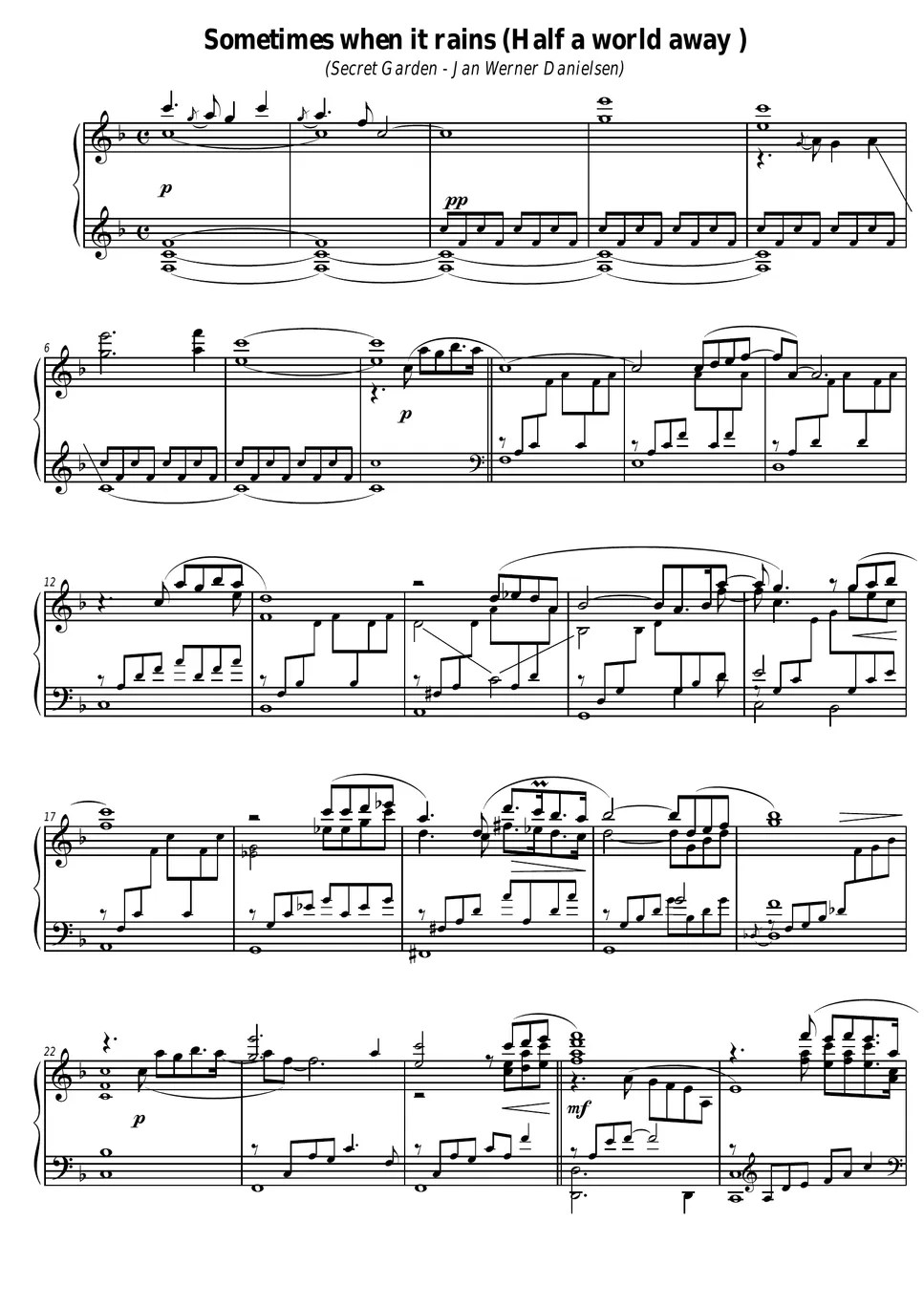 Secret Garden Sometimes when it rains Half A World Away (album from www.mymusicsheet.com